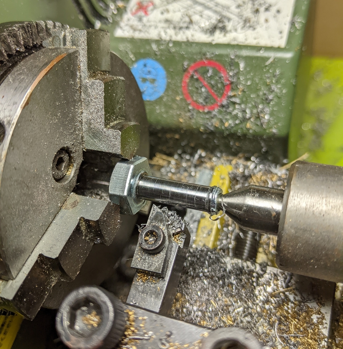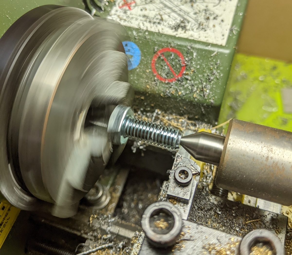 六角面の芯はそこまでずれていなかったので芯押し台をどうにか使ってなんとかしました。