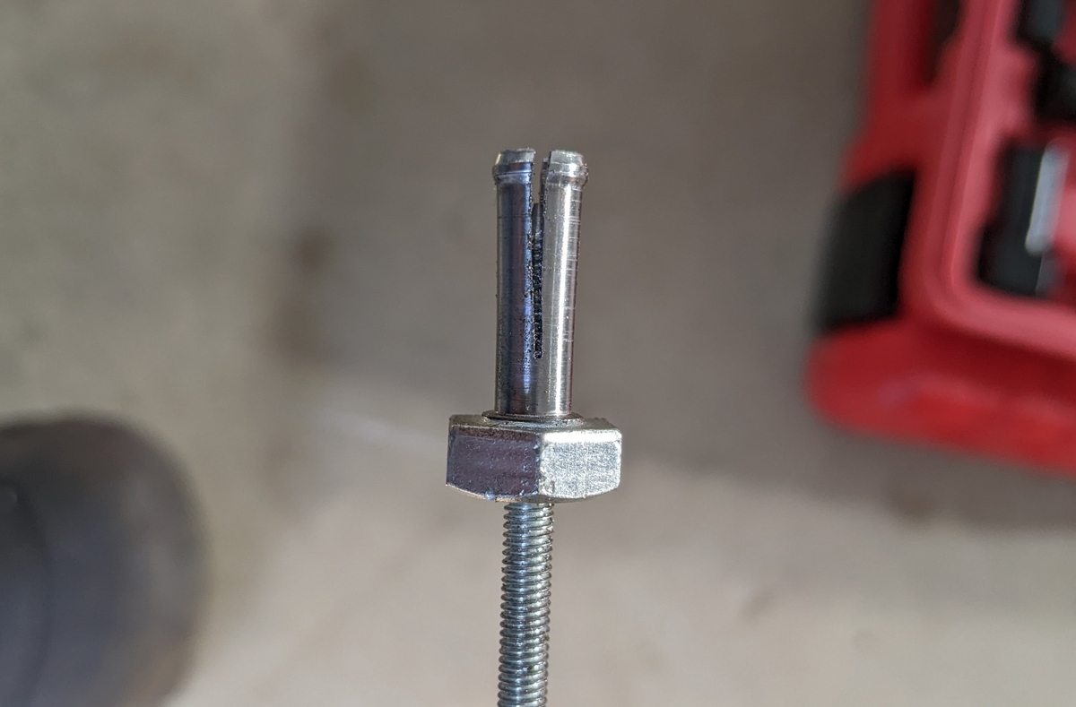 押しボルトに段を付けなかったせいか、下穴が浅いせいか、押しボルトがだいぶ手前の時点で先端が広がってしまっています。