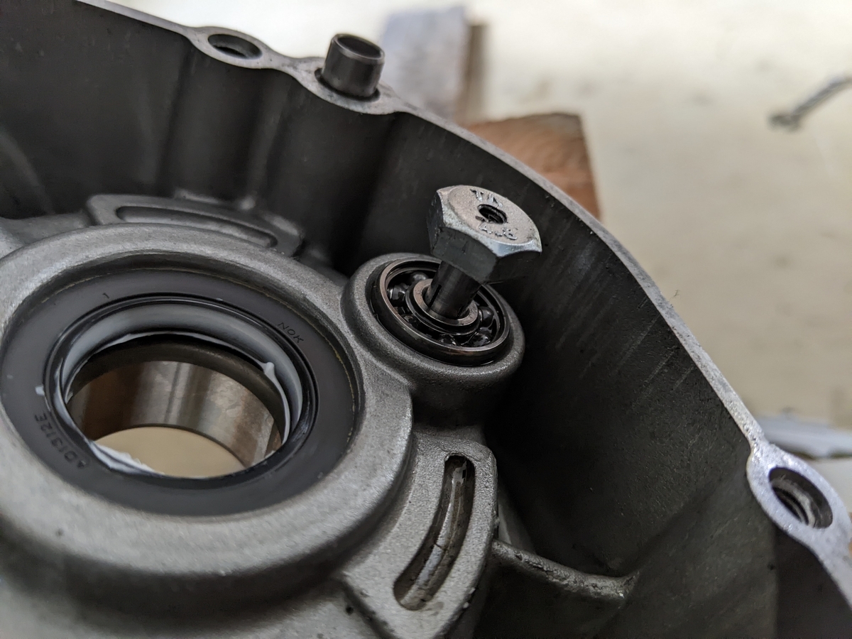 クランクケース側はベアリングの奥側が深く、先端が広がるスペースが十分あったおかげで何とかなりましたが、クラッチカバー側はベアリングの奥側の余裕が1mm程度しかありません。